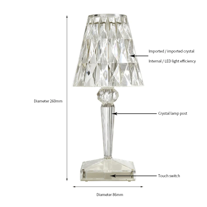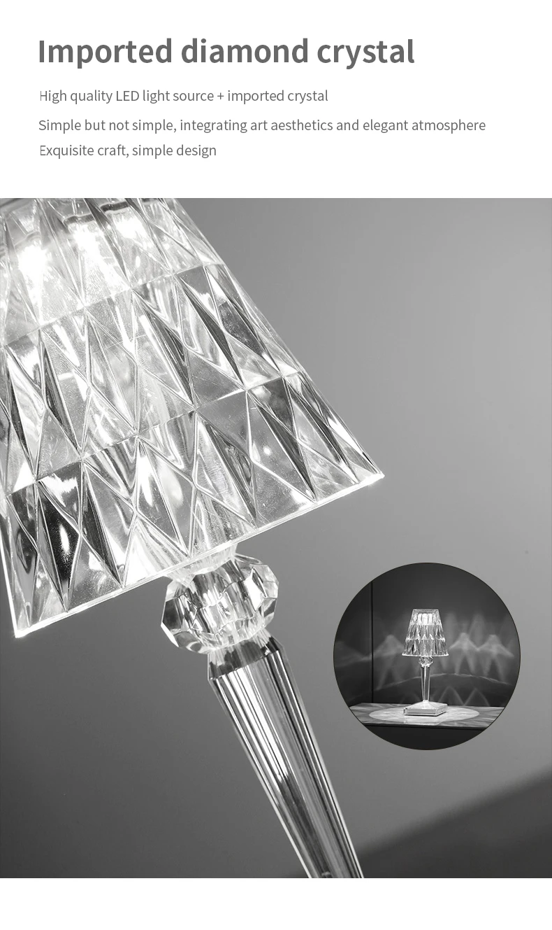 Acryl Kristall Diamant Tischlampe mit Dreifarbigem Licht
