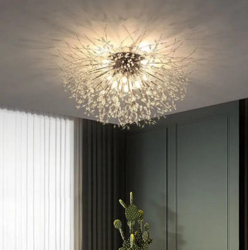 Diese moderne Deckenleuchte im Löwenzahn-Design verleiht Ihrem Schlafzimmer einen Hauch von Eleganz. Das galvanisierte Eisenrahmen ist korrosions- und rostbeständig, während die diamantgeschliffenen Kristalle ein funkelndes Lichtspiel erzeugen. Ausgestattet mit energiesparenden G9-LEDs bietet sie gleichmäßiges, augenfreundliches Licht. Mit dreifacher Farbtemperatur und zwei Farbvarianten passt sie perfekt zu verschiedenen Einrichtungsstilen.