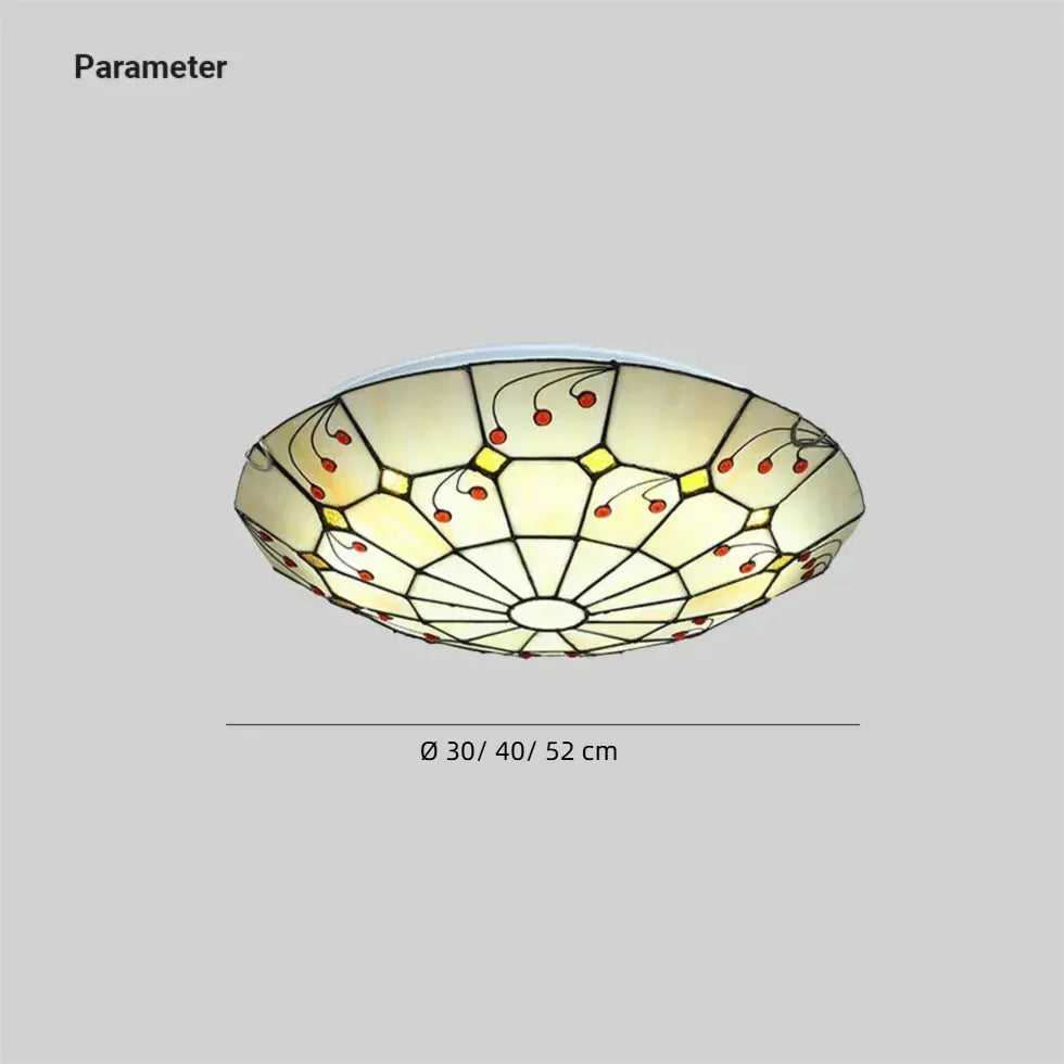 Diese runde Tiffany Stil LED Deckenleuchte ist ein Highlight für jedes Schlafzimmer. Der handgefertigte Glasschirm mit liebevoll gestaltetem Kirschmuster verleiht dem Raum eine verspielte und charmante Note. Dank moderner LED-Technologie bietet sie flimmerfreies, energiesparendes Licht mit hoher Farbwiedergabe. Erhältlich in drei Größen, ideal für unterschiedliche Raumkonzepte.