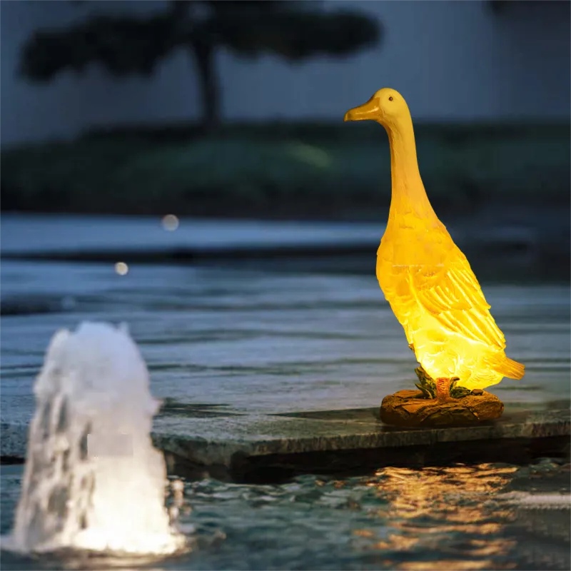 Diese Garten-Deko-Leuchte mit einem charmanten Gänse-Design aus Resin bringt nicht nur Licht, sondern auch eine verspielte Atmosphäre in Ihren Garten. Hergestellt aus umweltfreundlichem Resin und Glasfaser, bietet sie eine robuste, langlebige Struktur. Die Solarversion sorgt für energieeffiziente Beleuchtung, während die LED-Lampe mit hoher Farbtreue für eine warme, einladende Stimmung sorgt. Mit IP54-Schutzklasse ist sie wetterfest und langlebig – ideal für den Außenbereich.