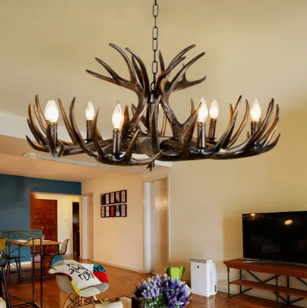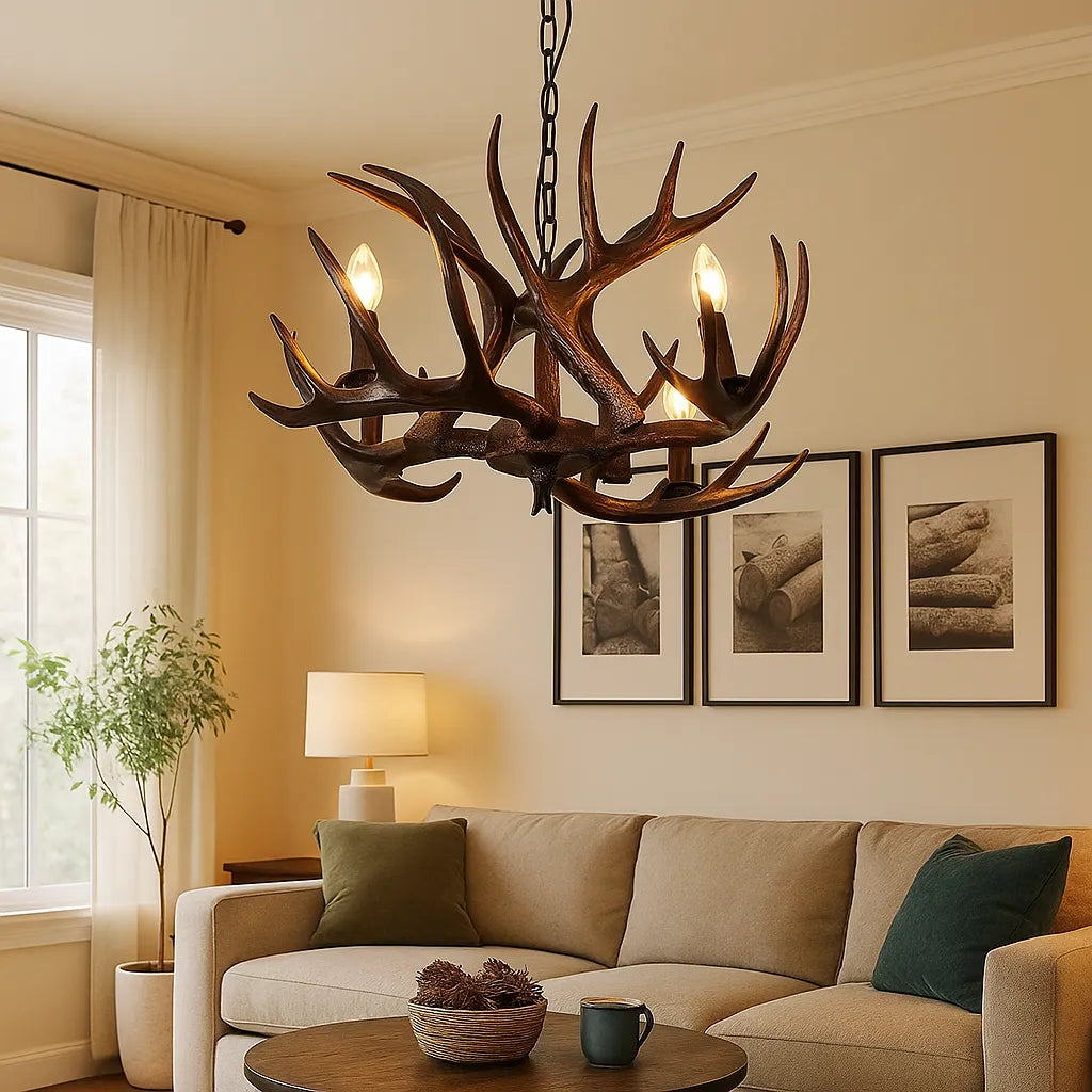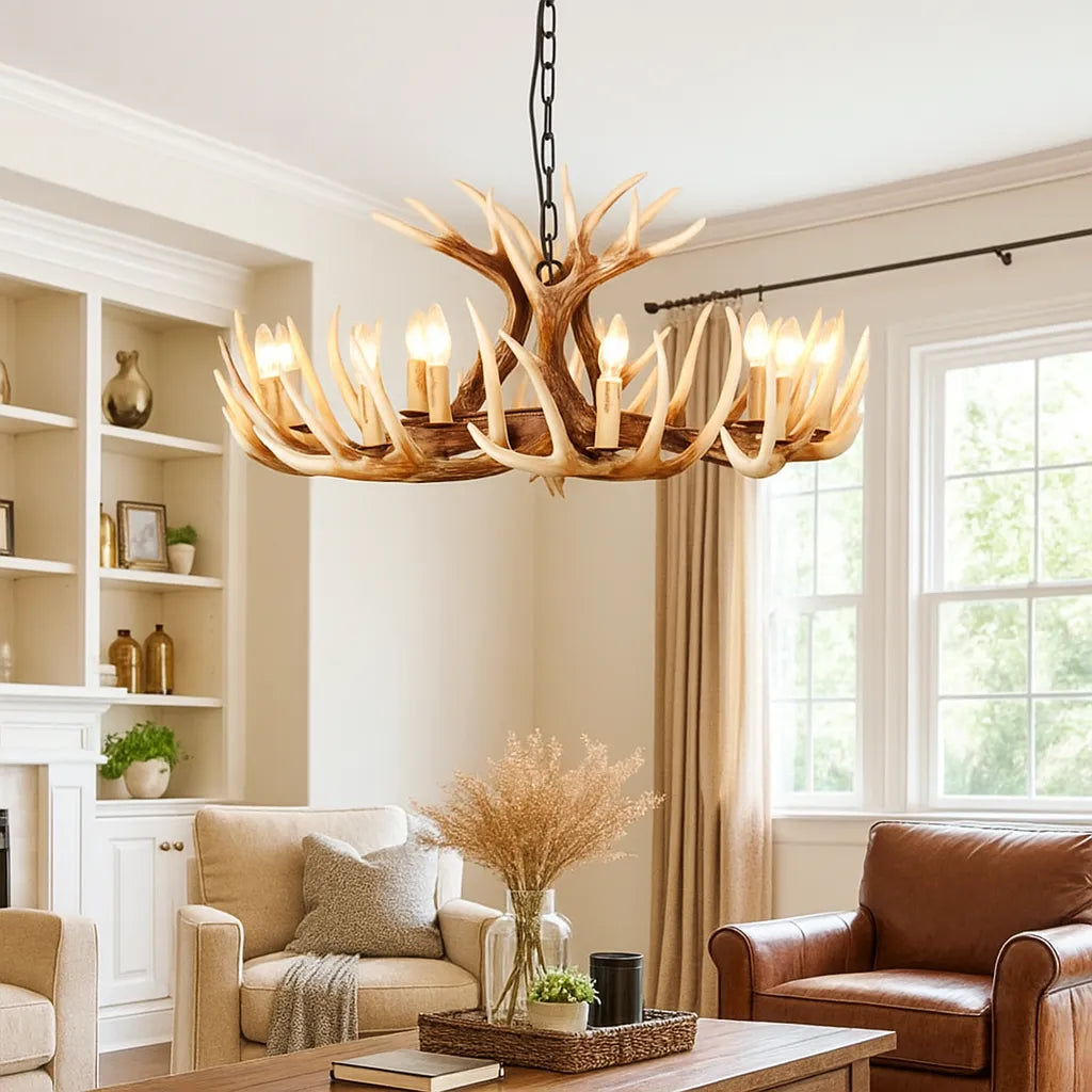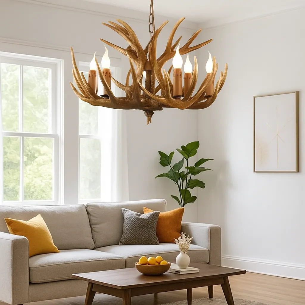Der rustikale Kronleuchter im Landhausstil beeindruckt mit seinem einzigartigen Geweih-Design und den eleganten Kerzenhaltern. Die lebensechten, im Detail gearbeiteten Geweihe aus hochwertigem Resin bieten eine rustikale, natürliche Optik. Die E14-Lampenfassung sorgt für hervorragende Lichtdurchlässigkeit und schafft eine gemütliche Atmosphäre. Wählen Sie aus drei verschiedenen Farben, die zu jedem Landhausstil passen.