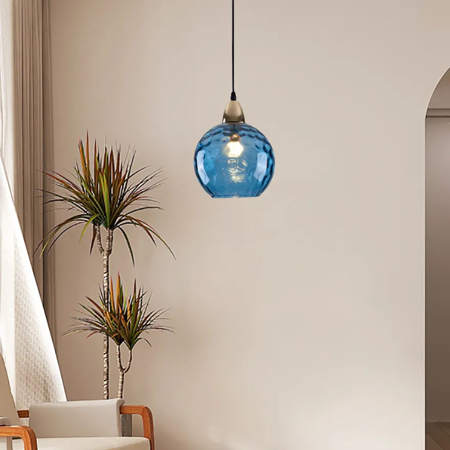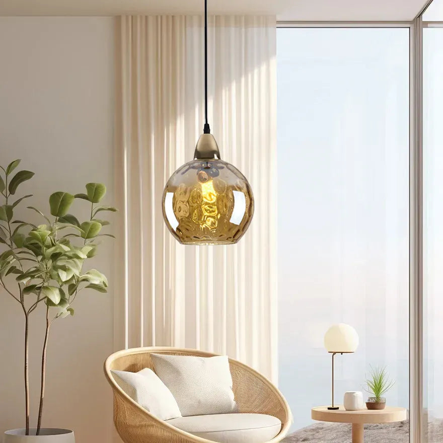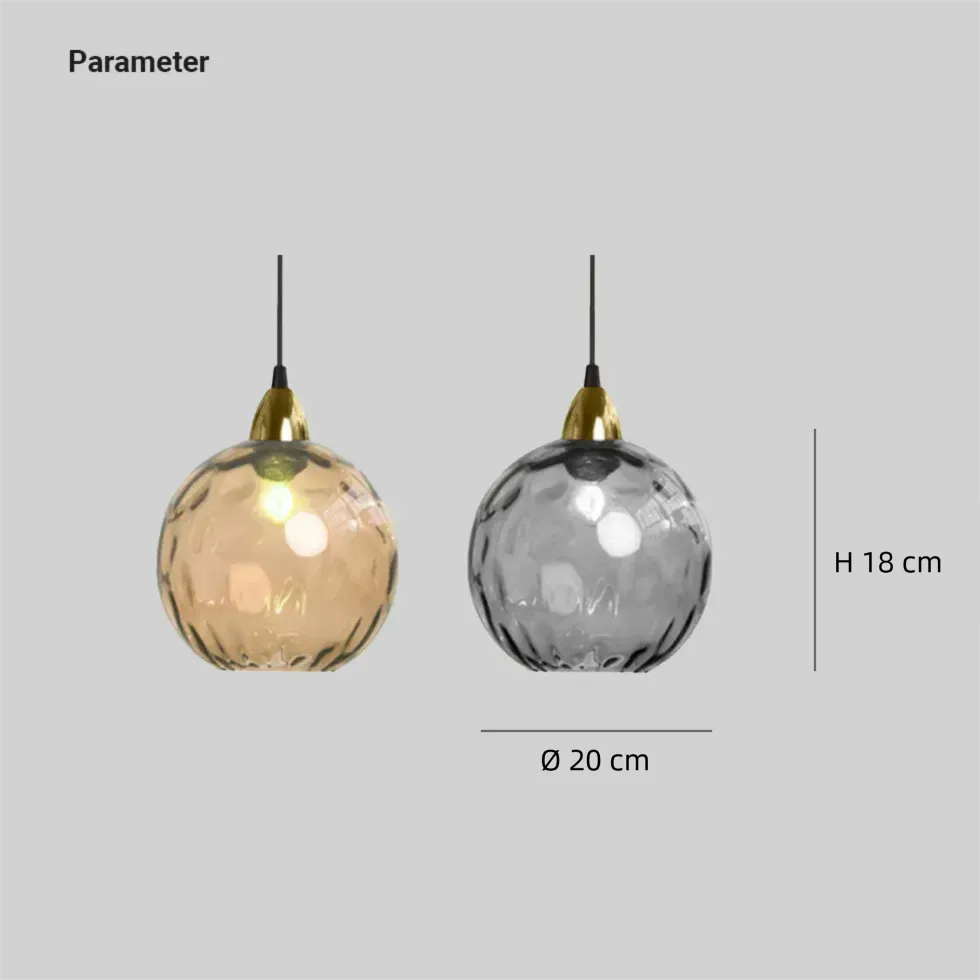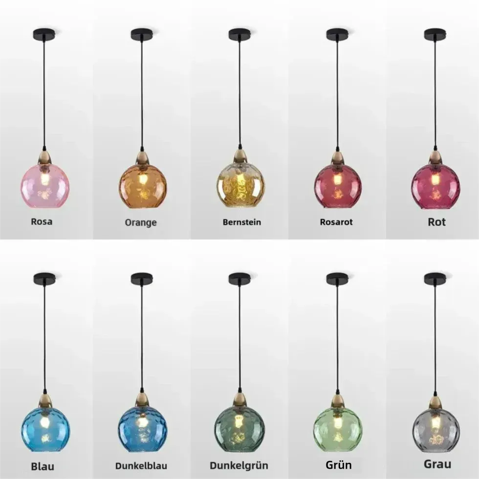 Diese Pendelleuchte aus Glas besticht durch ihre handgefertigten Wellenmuster, die ein warmes und einladendes Licht erzeugen. Der Eisenfuß mit feinster elektroplattierter, gebürsteter Oberfläche sorgt für eine gleichmäßige Farbgebung und eine exzellente Haptik. Hitzebeständiger Glaslampenschirm sorgt für zusätzliche Sicherheit. Wählen Sie aus verschiedenen Farben und gestalten Sie Ihr Zuhause in Wohnzimmer, Schlafzimmer oder Esszimmer.