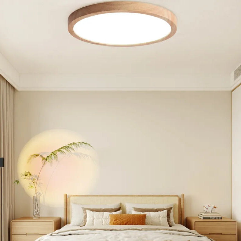Holz LED Deckenleuchte rund flach für Schlafzimmer