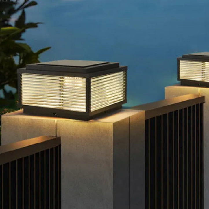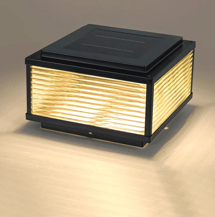 Diese Solar-Gartenleuchte in Schwarz bietet 4-seitige Beleuchtung, 3-Farb- und 7-Farb-Modi sowie IP65-Wasserschutz. Robuste galvanisierte Stahl- und Aluminiumstruktur mit gehärtetem Glas sorgt für langlebige, großflächige Lichtabgabe. Energiespar-LEDs ideal für alle Außenbereiche.