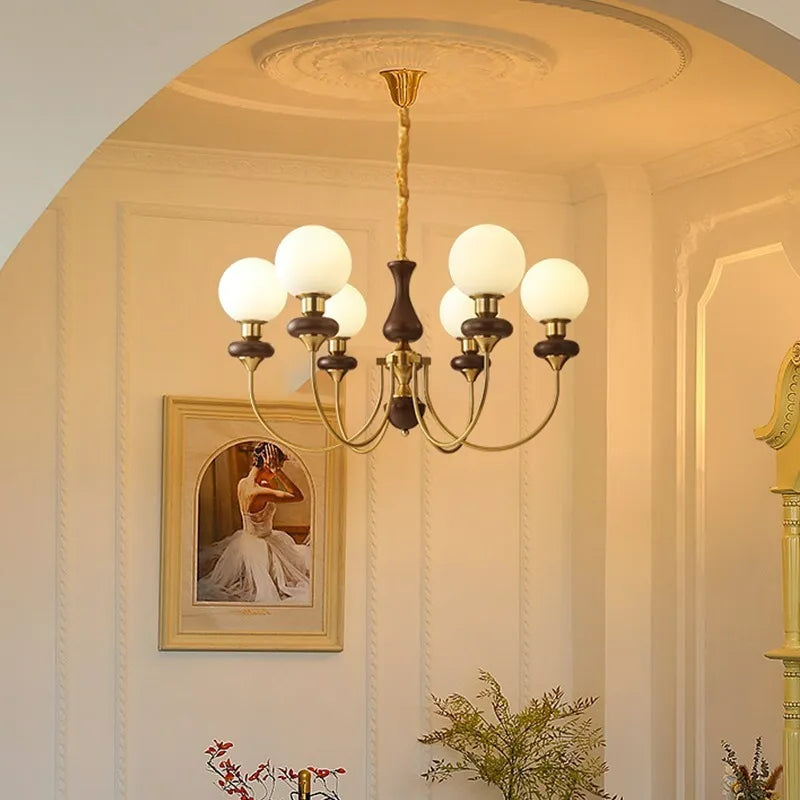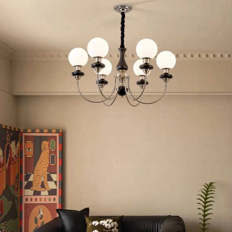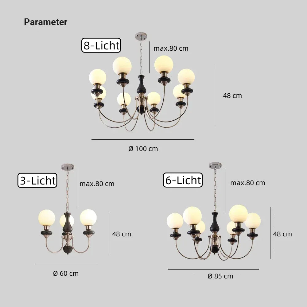 Der LED Kronleuchter im Retro Glas Kugeln bietet elegante Raffinesse für Ihr Wohnzimmer. Mit seinem einzigartigen Kugeldesign und verschiedenen Größenoptionen passt er ideal in Räume unterschiedlichster Größen. Die hochwertige Verarbeitung aus korrosionsbeständigem Metall und das klare, natürliche Holz mit einzigartiger Maserung garantieren Langlebigkeit und Stil. Der Lampenschirm aus hochtransparentem Glas sorgt für eine gleichmäßige, blendfreie Beleuchtung. Ein idealer Hingucker in jedem Wohnzimmer, der zusätzlich eine augenschonende Beleuchtung bietet.