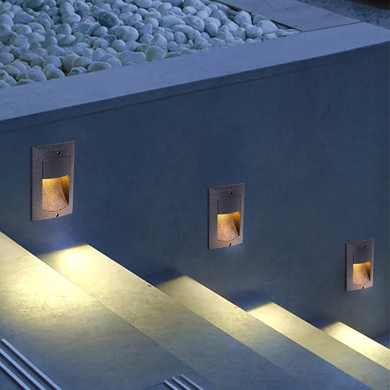 Diese schwarze LED Wandeinbauleuchte für den Außenbereich bietet eine elegante Lösung für Ihre Beleuchtungsbedürfnisse. Mit ihrem praktischen, eingebauten Design spart sie Platz und verleiht Ihrem Außenbereich ein modernes Aussehen. Der hochwertige, korrosionsbeständige Druckguss-Aluminiumrahmen und das satinierte Glas sorgen für Langlebigkeit und Widerstandsfähigkeit bei hohen Temperaturen. Der IP65 wasserdichte Schutz macht sie ideal für den Einsatz in Gärten, an Außentreppen oder in Garagen.