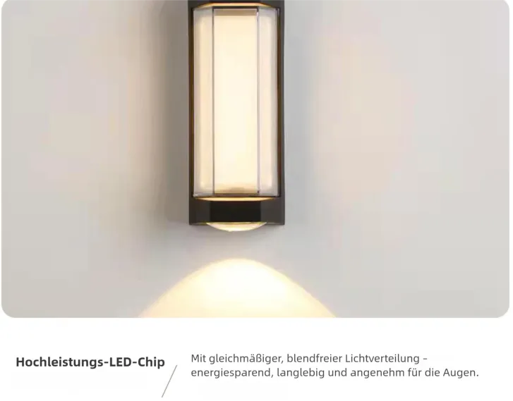 Die LED Wandleuchte Außen Up Down bietet eine moderne und funktionale Beleuchtung für den Außenbereich. Mit der IP65 Schutzklasse ist sie absolut wasserdicht und resistent gegen Wind und Regen. Der robuste Aluminiumkörper garantiert eine hohe Langlebigkeit und Witterungsbeständigkeit. Erhältlich in klassischem Schwarz oder Weiß, fügt sich die Leuchte perfekt in jedes Outdoor-Design ein.
