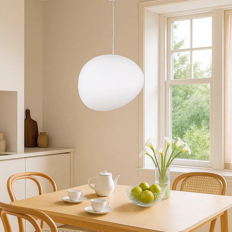 Die Moderne Pendelleuchte aus Glas in Ei-Form für Esszimmer bietet ein modernes, minimalistisches Design mit einer eleganten Eierschalenform. Sie ist in vier verschiedenen Größen erhältlich, perfekt für verschiedene Raumgrößen. Mit energiesparender LED-Beleuchtung und einer robusten Metallbasis sorgt sie für stilvolles Licht in Esszimmer.